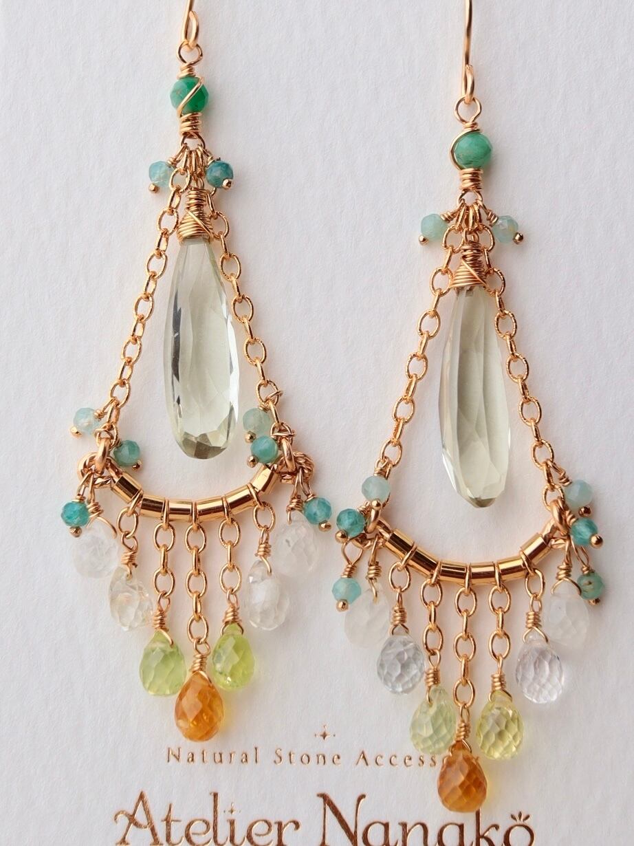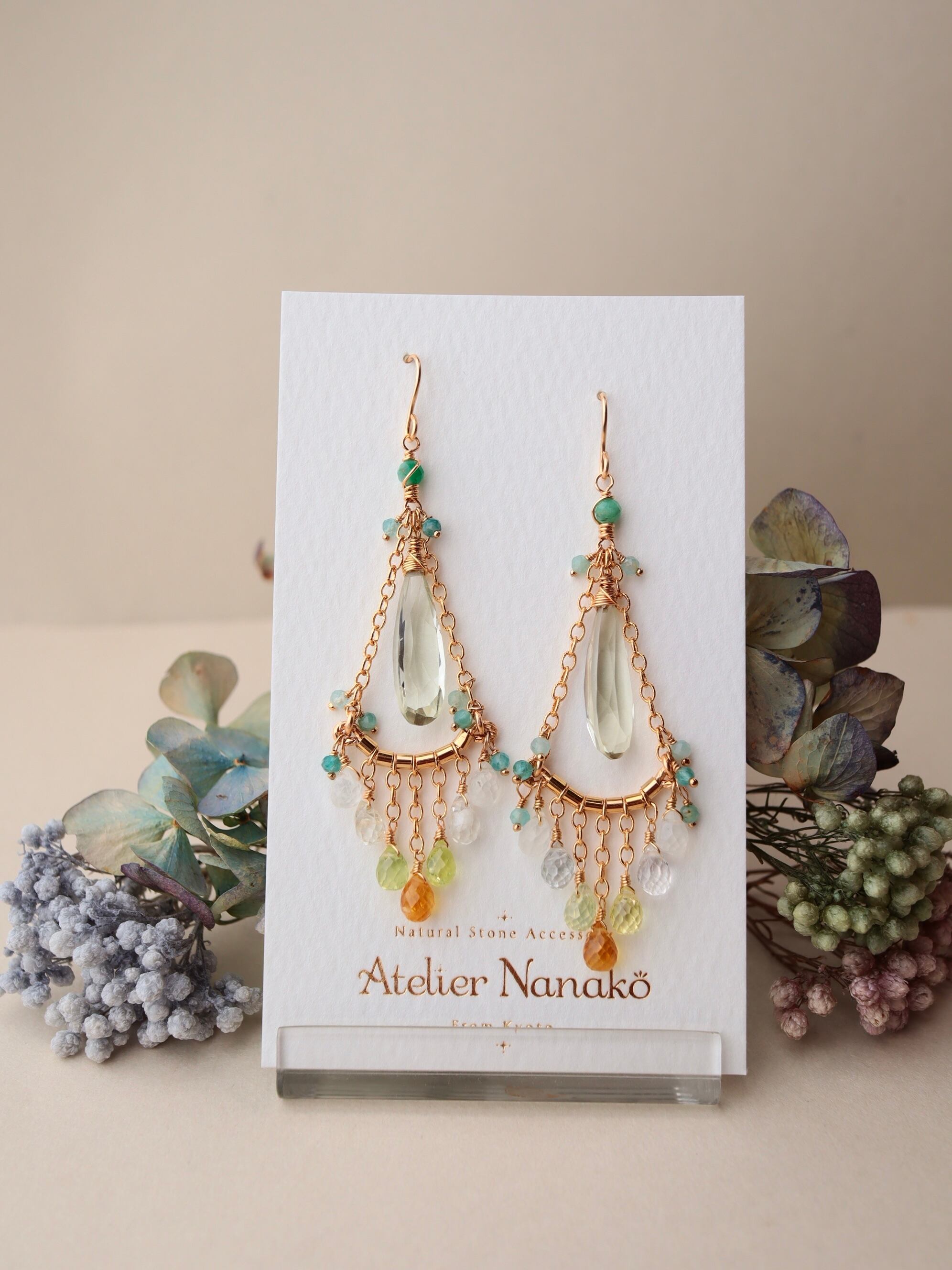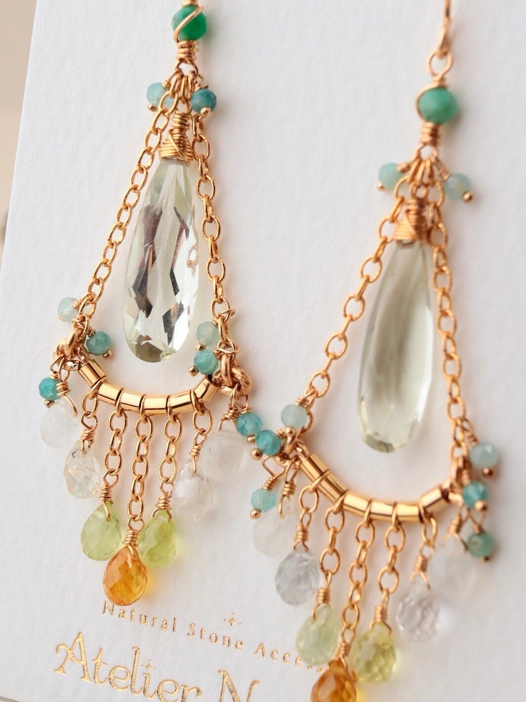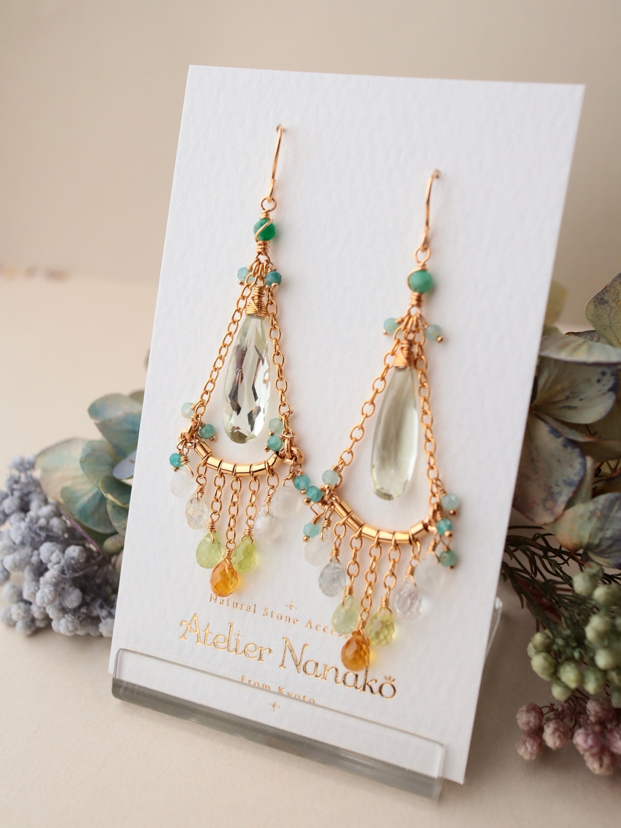 グリーンアメジストとイエローサファイアのロングシャンデリアピアス/イヤリング