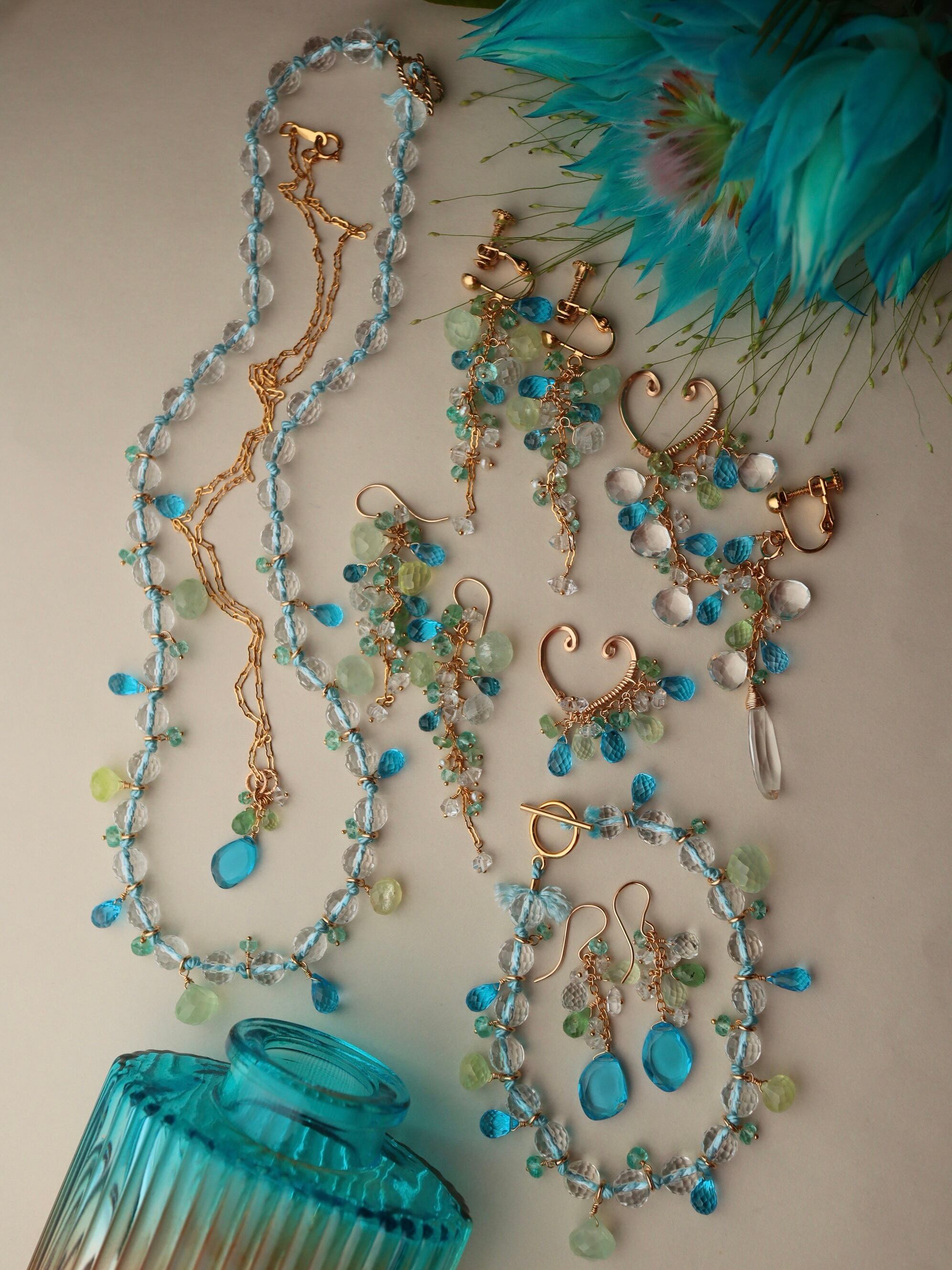 水晶、スイスブルートパーズ、プレナイト、アパタイト