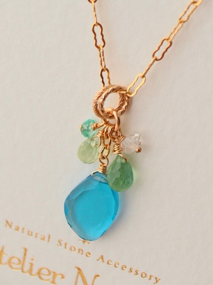 スイスブルートパーズ、グリーンカイヤナイト、プレナイト、ダブルポイント水晶、アパタイト