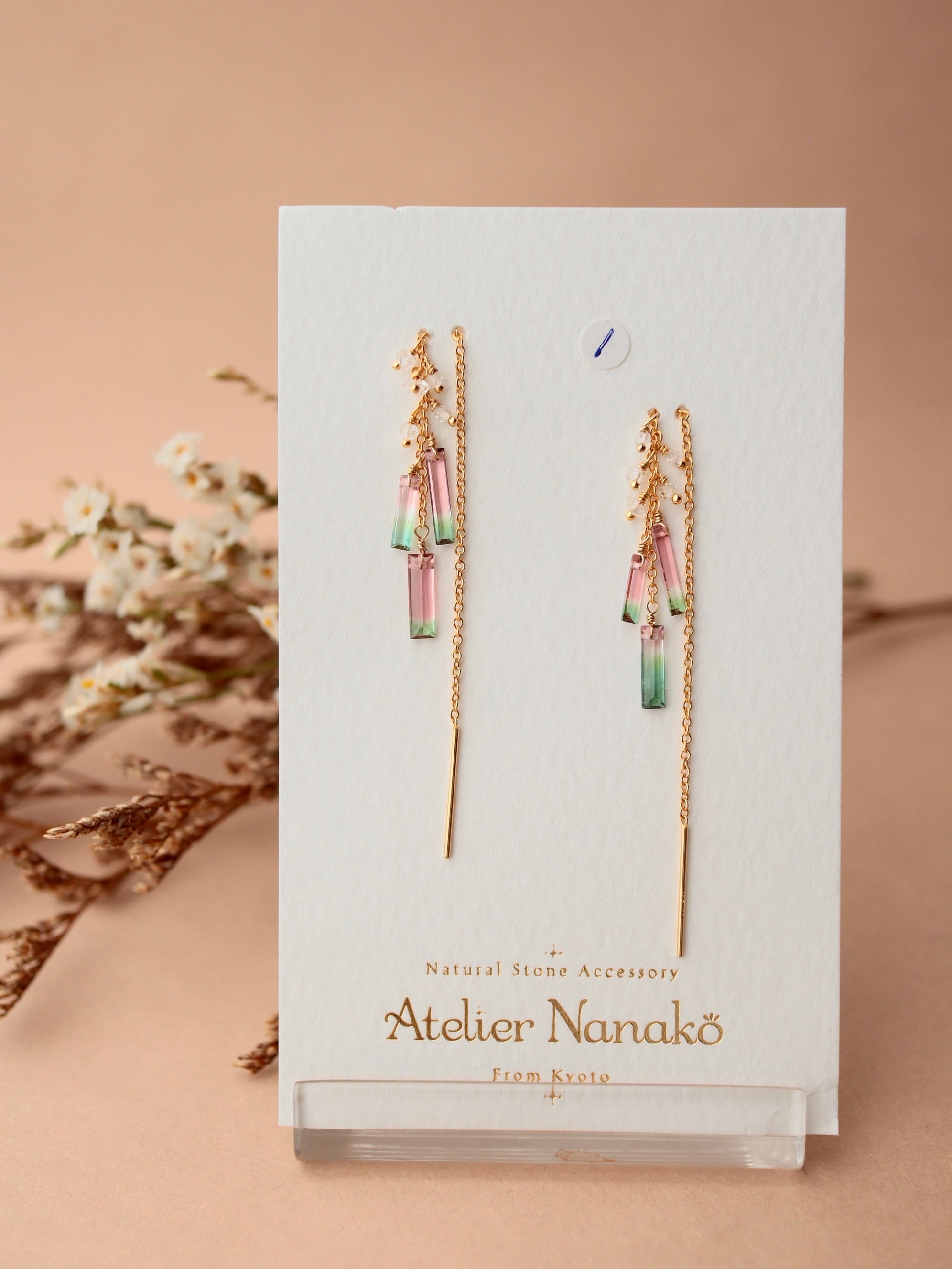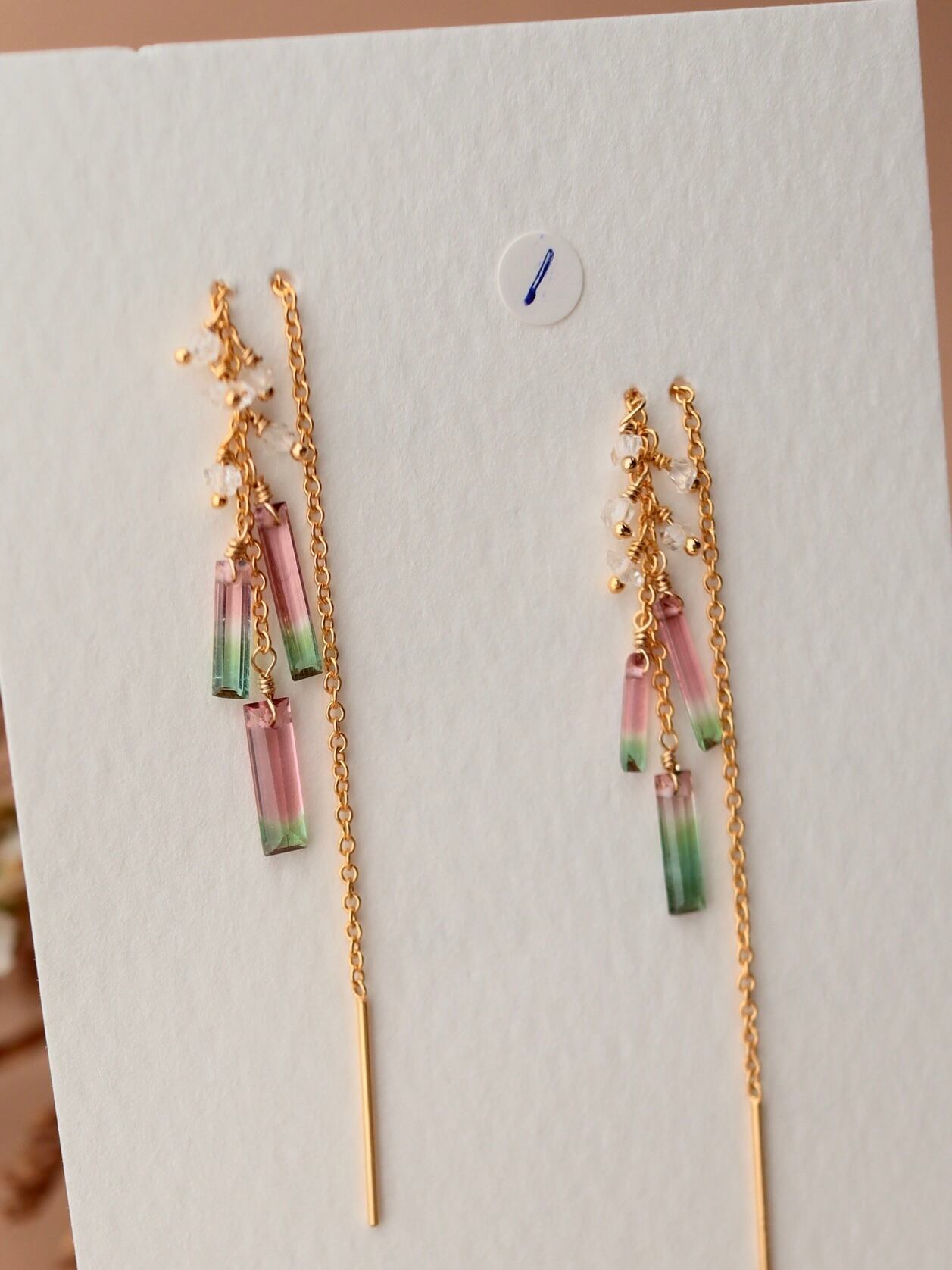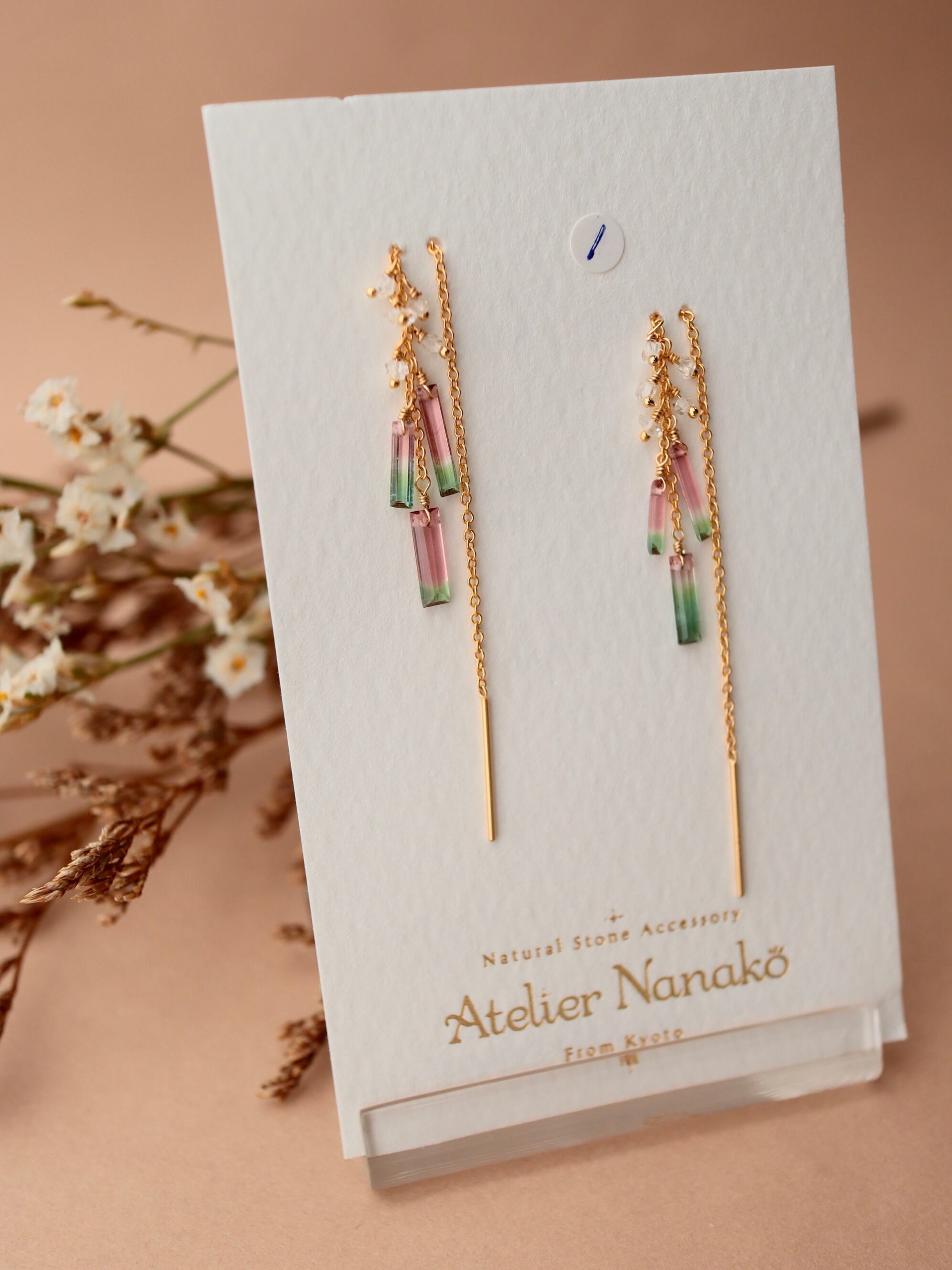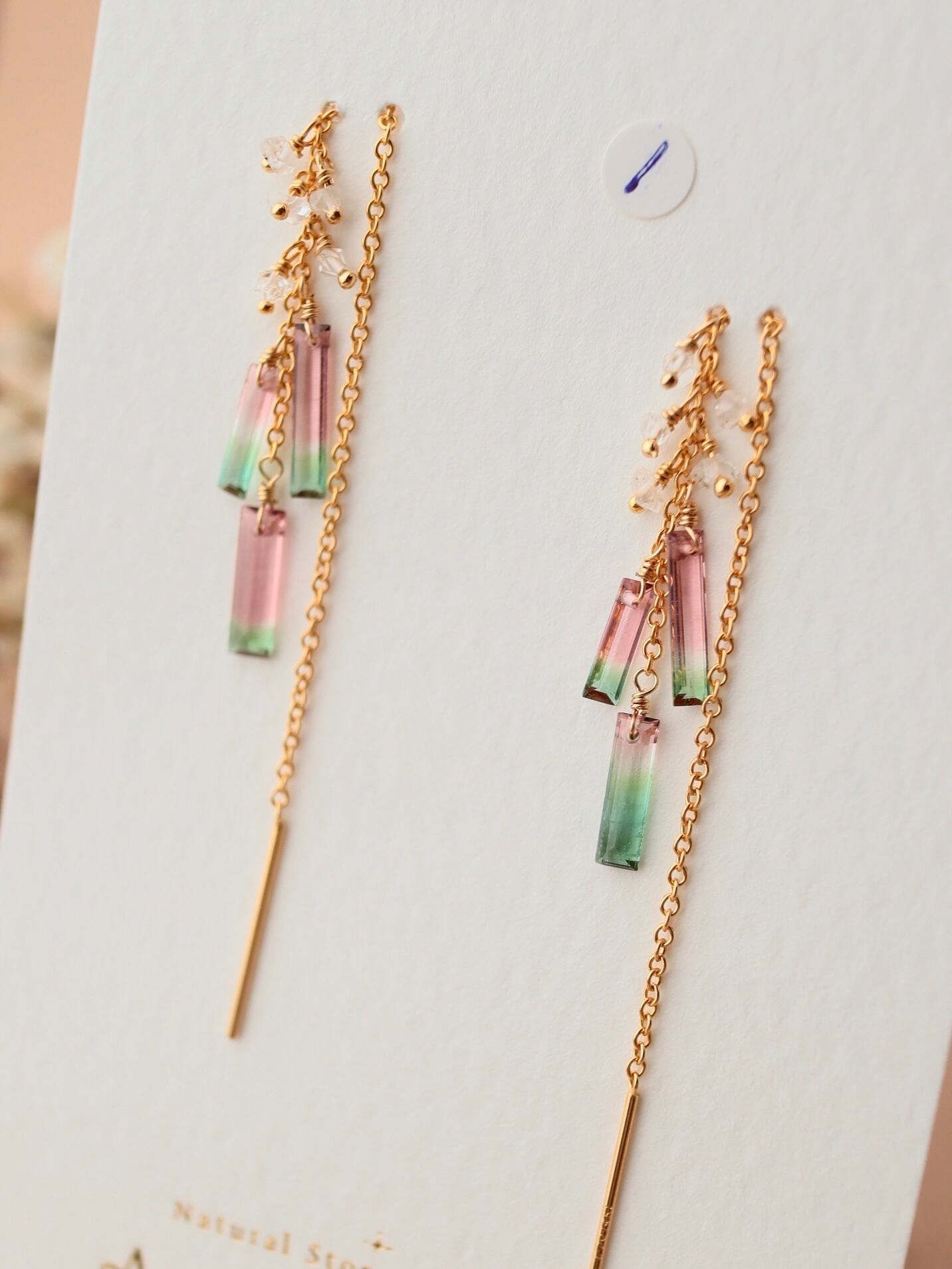 【3粒タイプ】①ウォータメロントルマリンのアメリカンピアス
