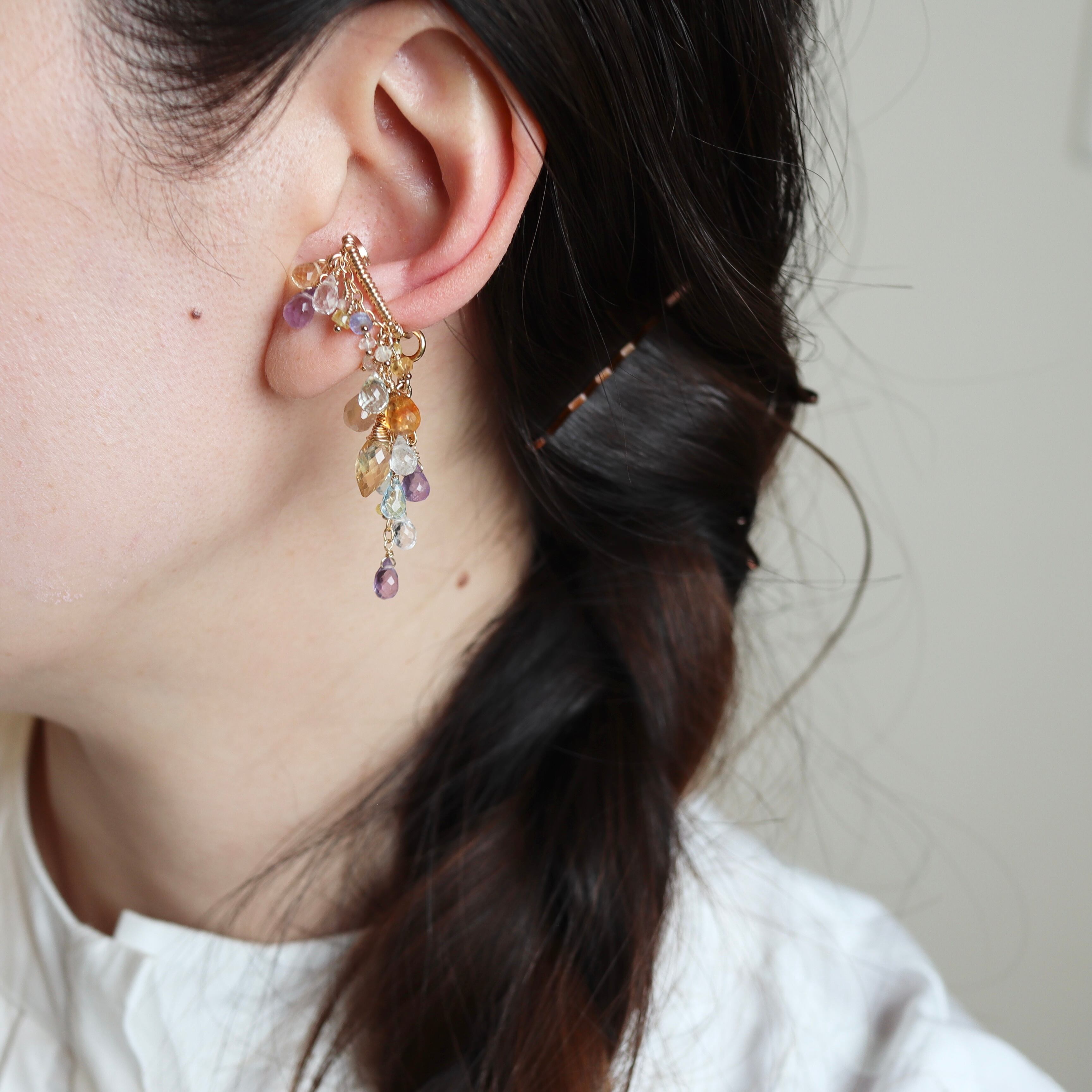 お耳の上の方からイヤカフを装着し、下に下ろしながらお耳に沿わせてください。