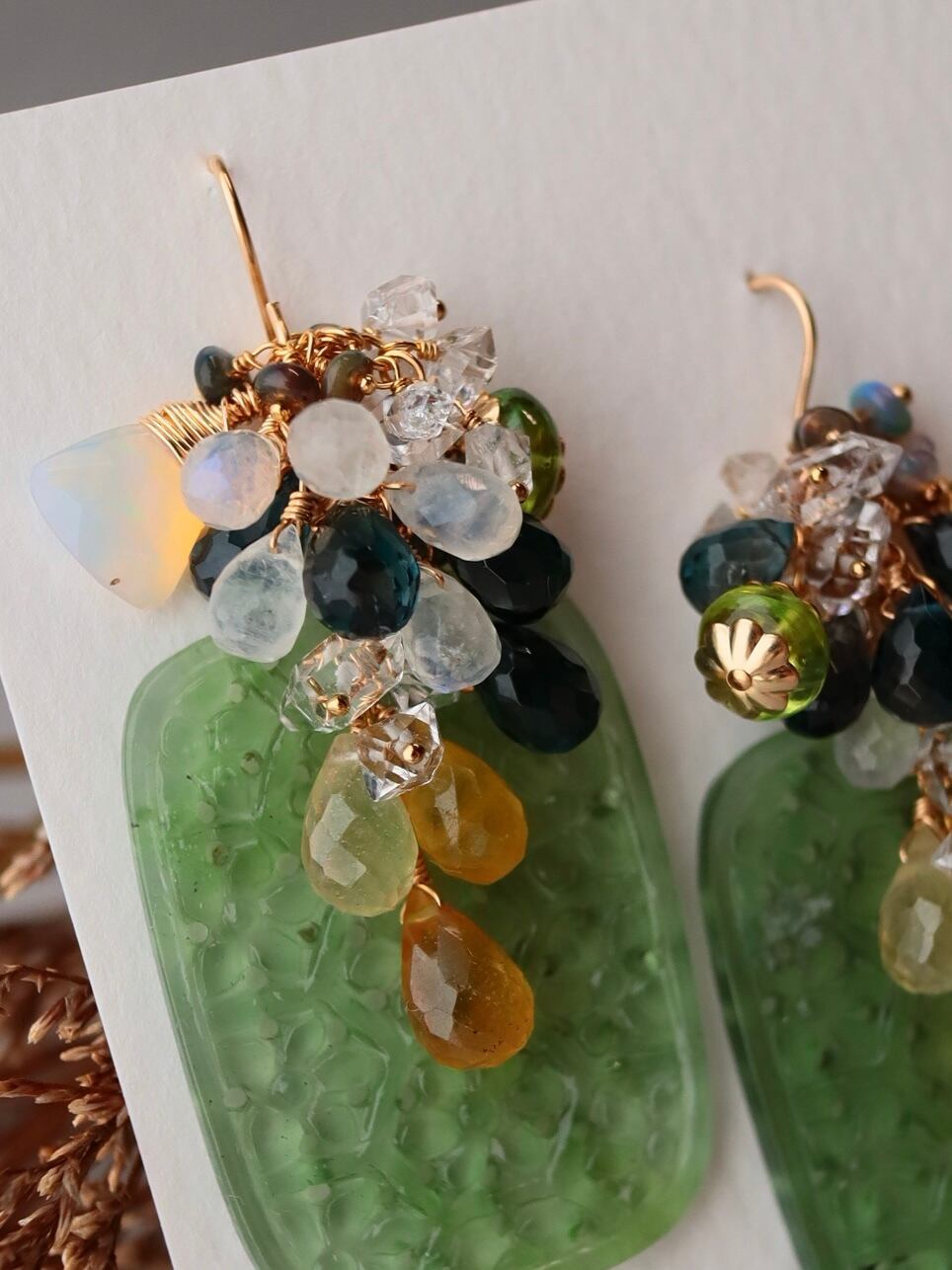 【一点もの】カービングアベンチュリンのピアス/イヤリング①