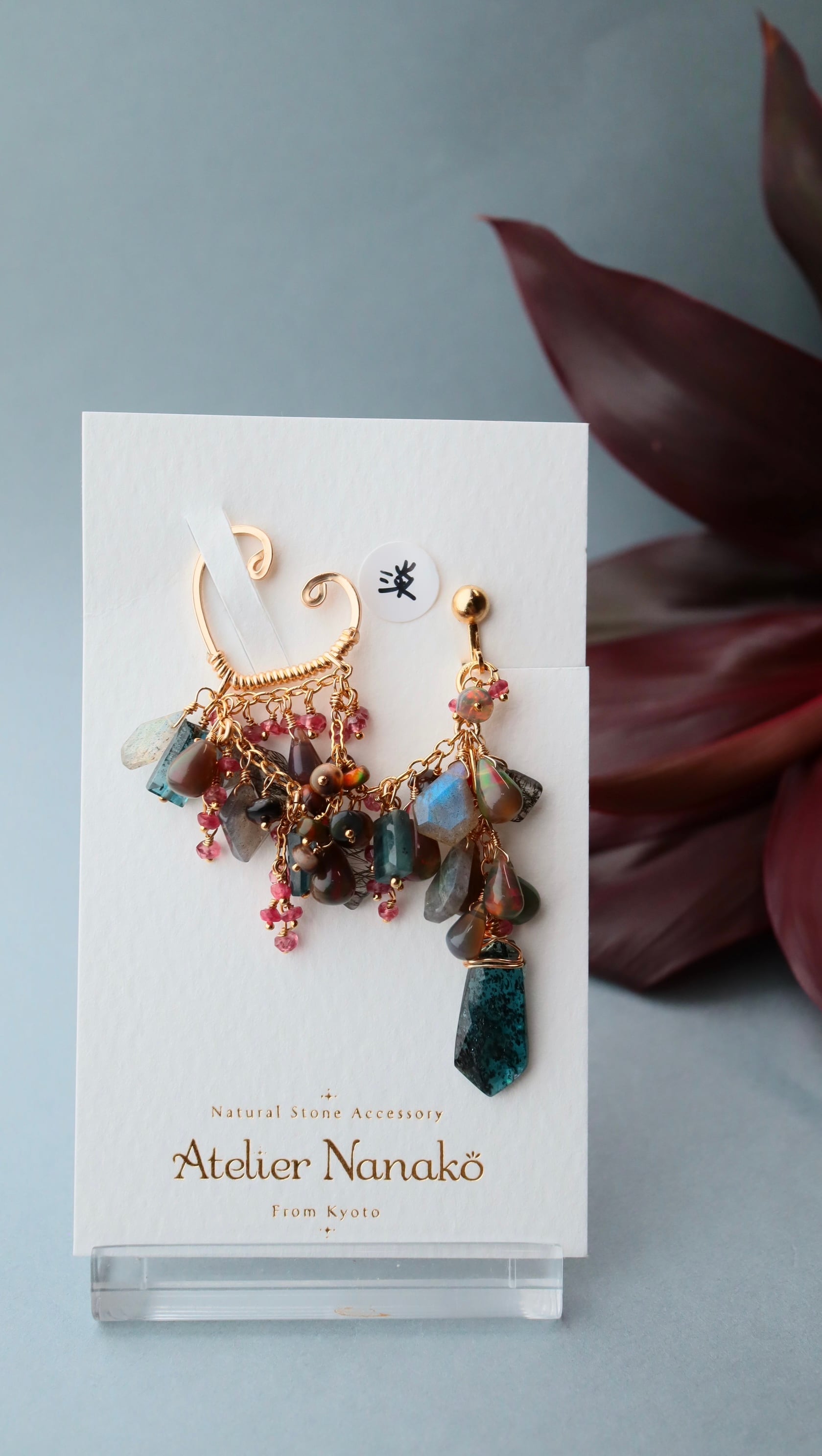 ブラックオパール、ディープブルーカイヤナイト、ラブラドライト、レッドスピネル、ブラックルチルクォーツ