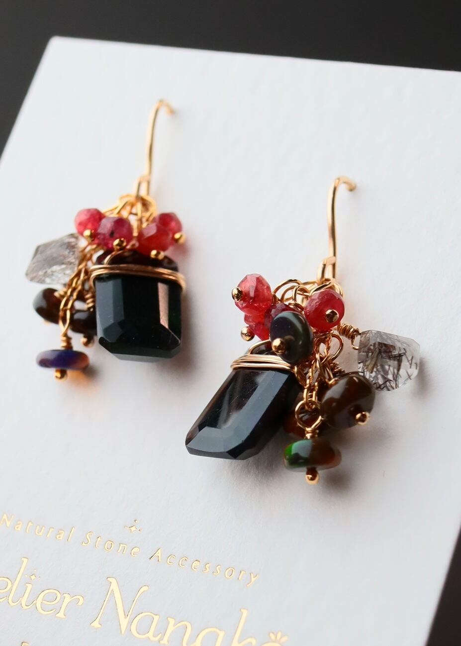 ブラックオパール、レッドスピネル、ブラックルチルクォーツ