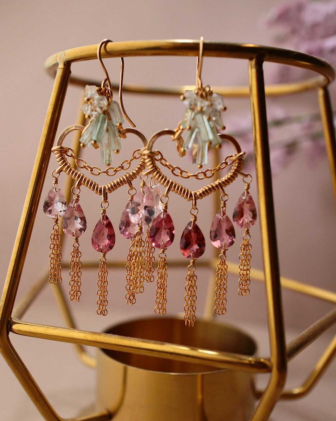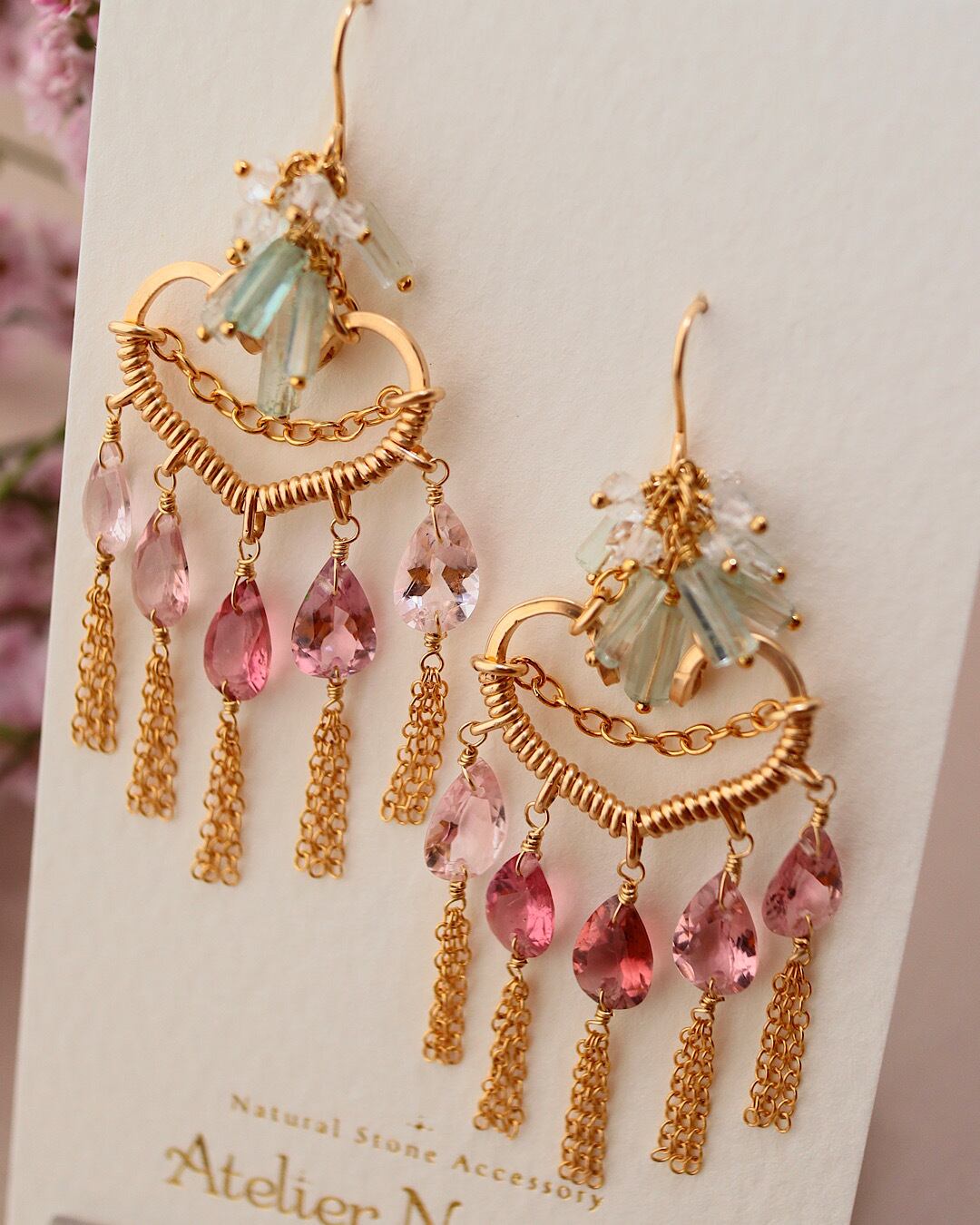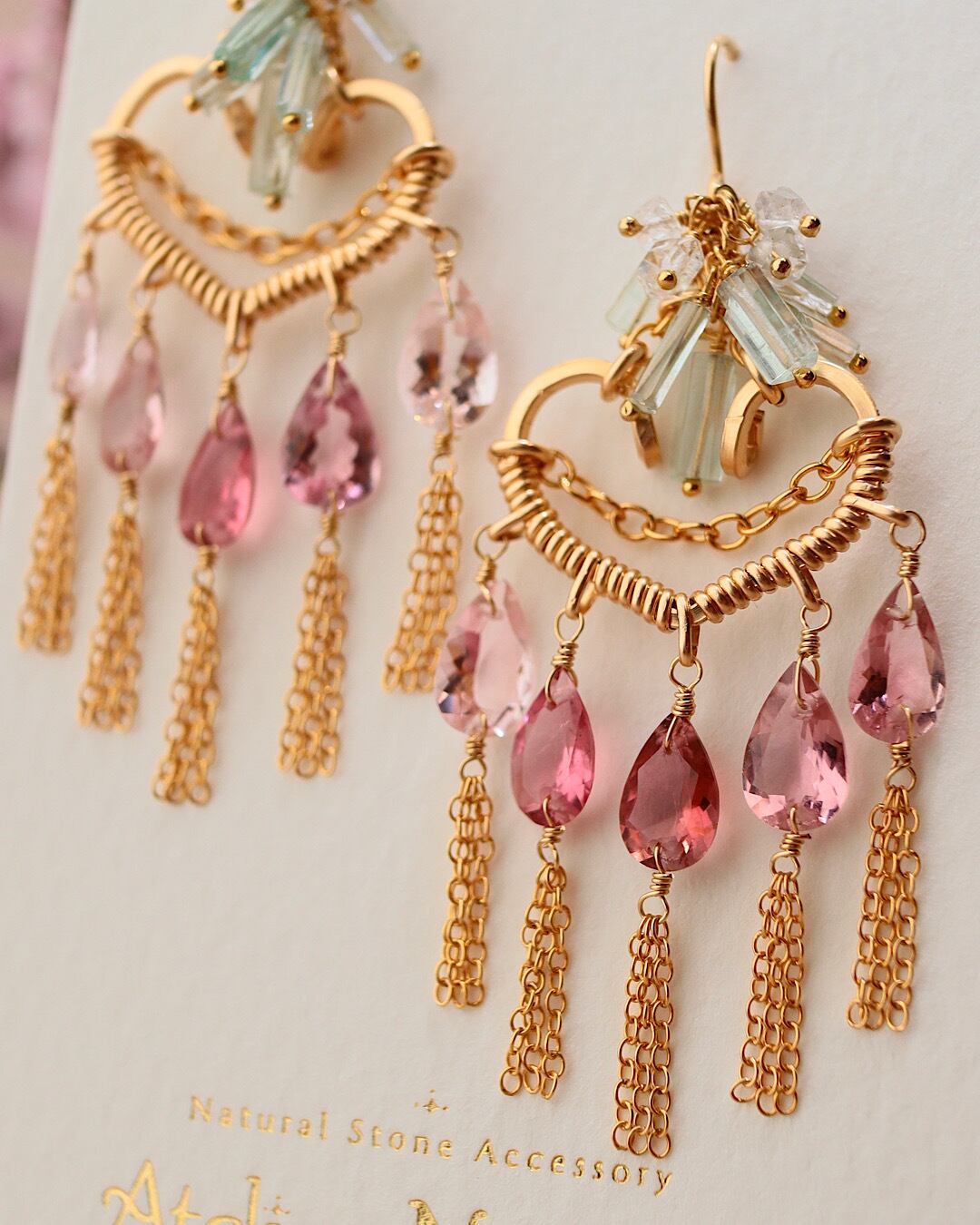 【1点もの】ピンクトルマリンのハートシャンデリアピアス/イヤリング
