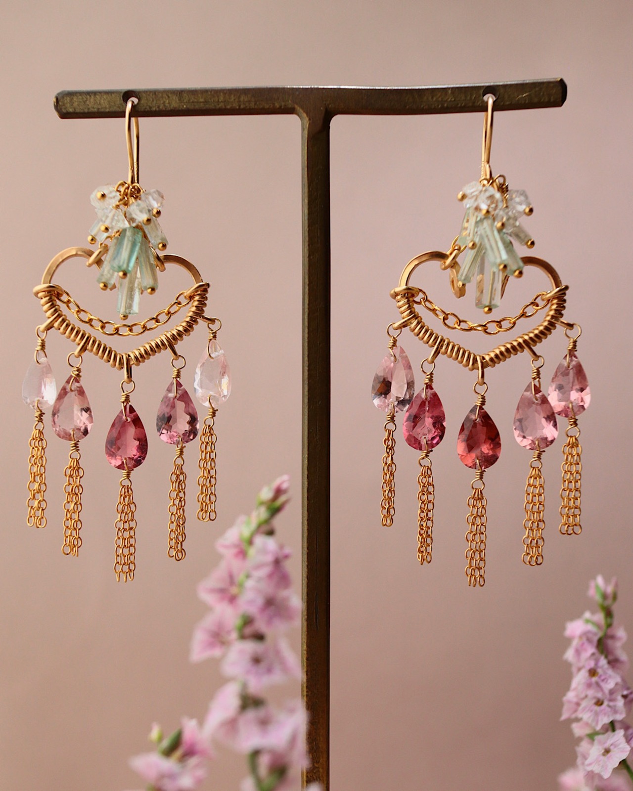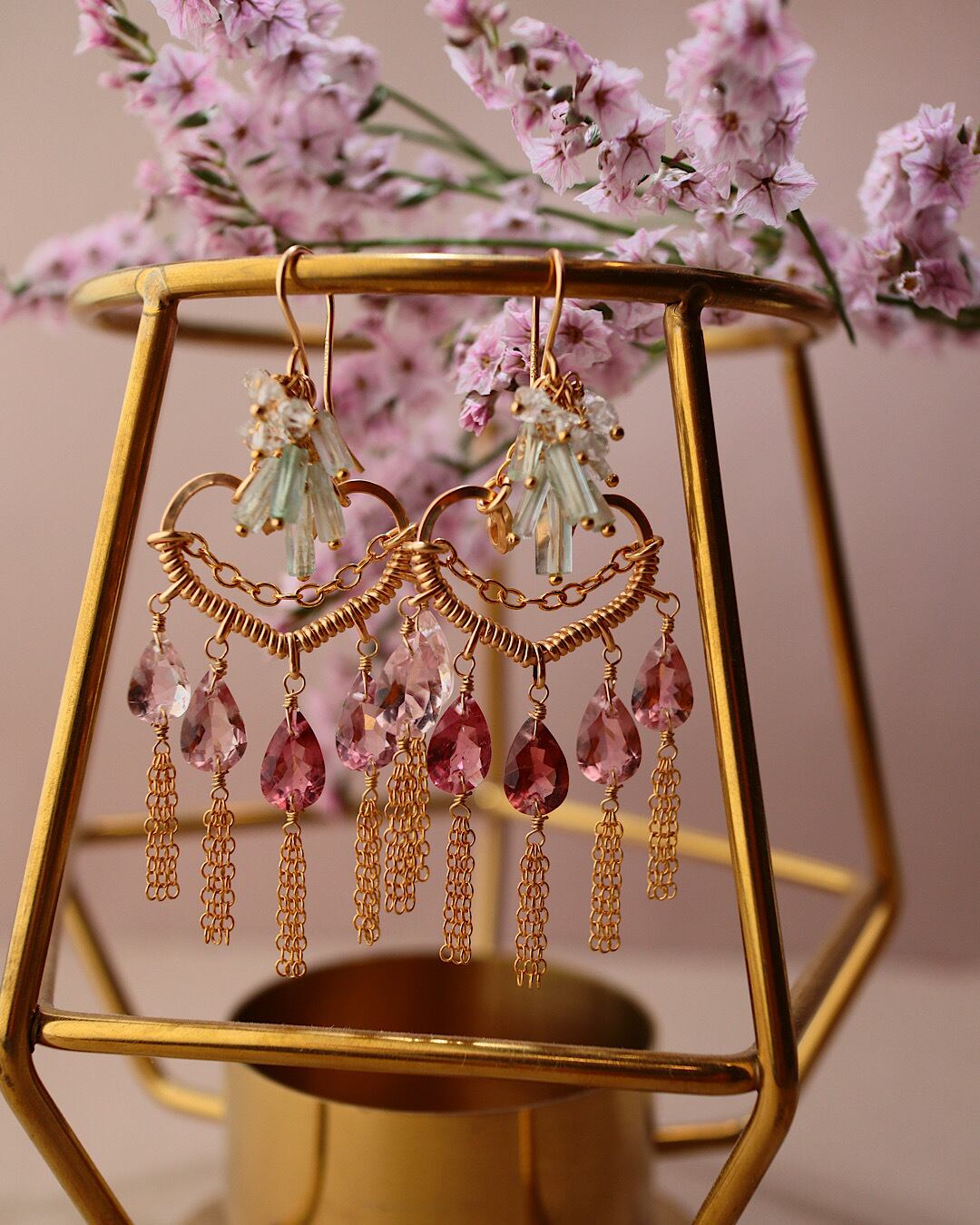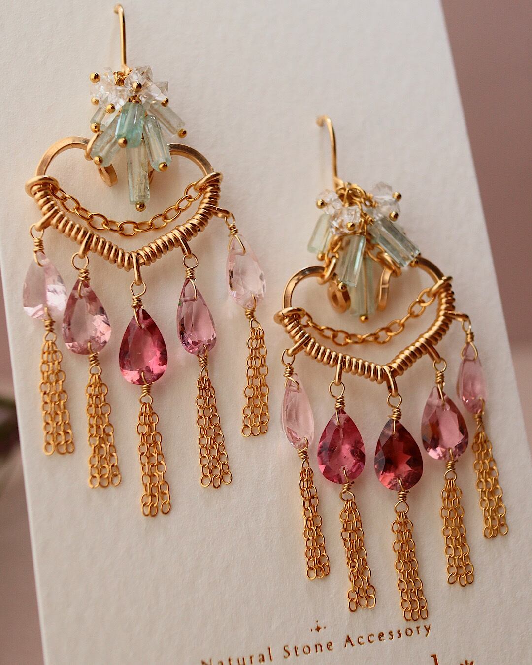 【1点もの】ピンクトルマリンのハートシャンデリアピアス/イヤリング