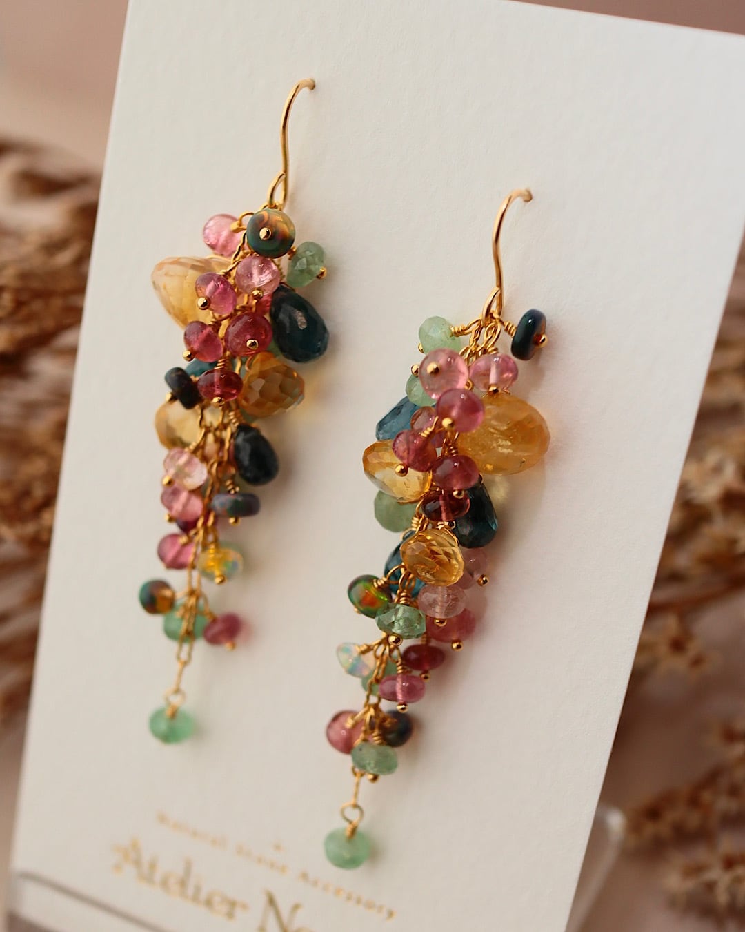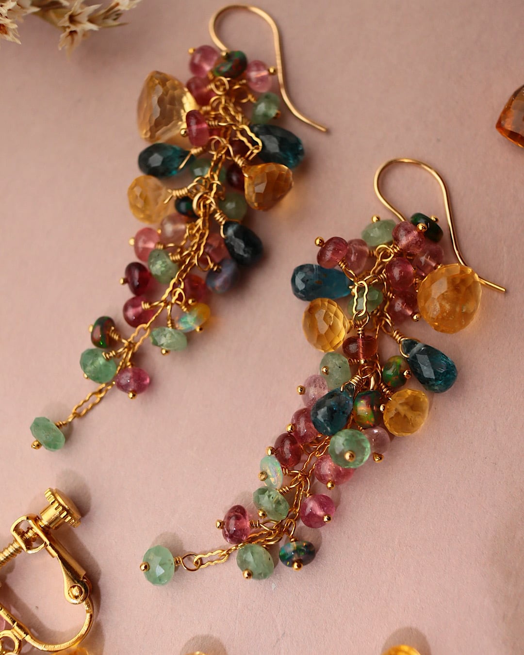 シトリン、ピンクトルマリン、ディープブルーカイヤナイト、グリーンカイヤナイト、ブラックオパール