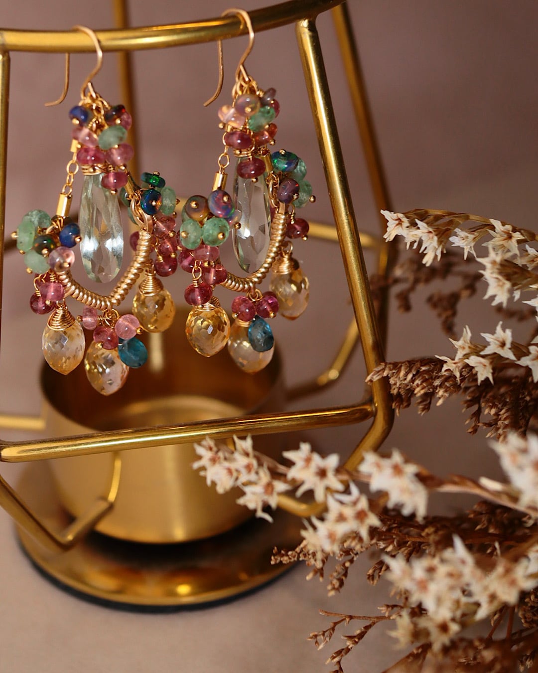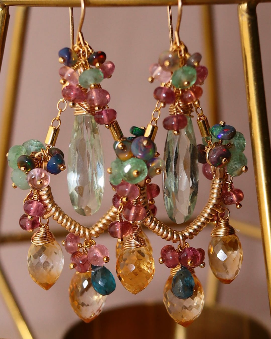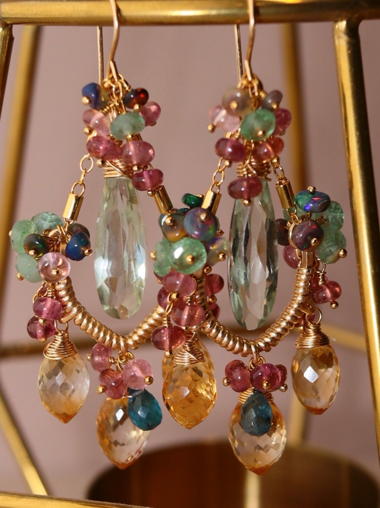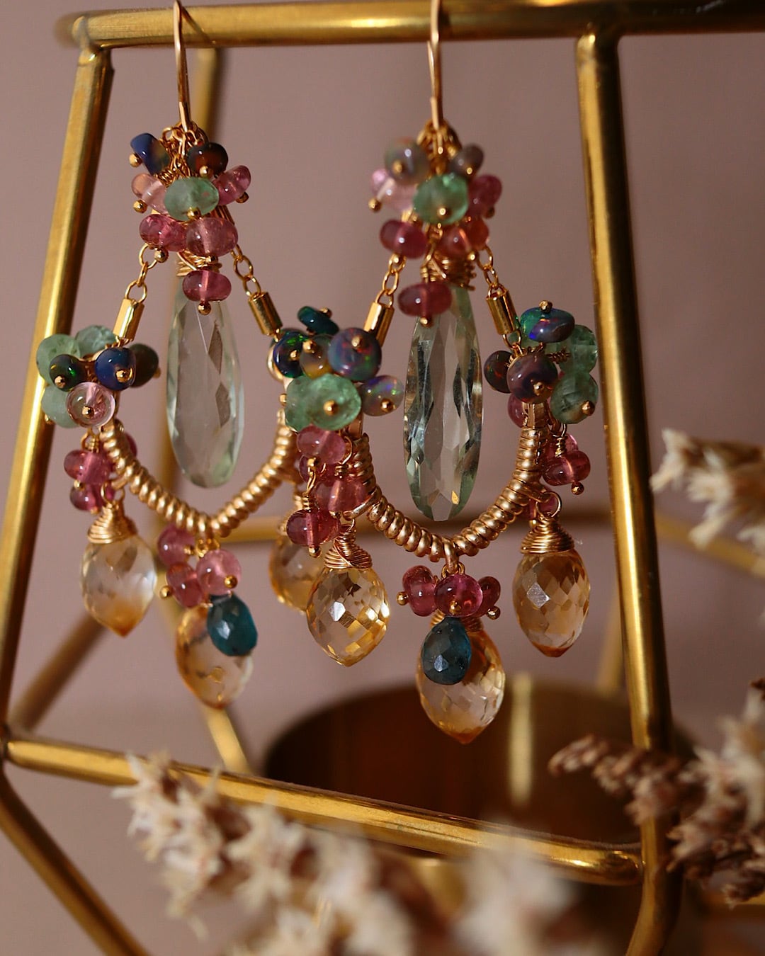 シトリン、ピンクトルマリン、グリーンアメジスト、ディープブルーカイヤナイト、グリーンカイヤナイト、ブラックオパール