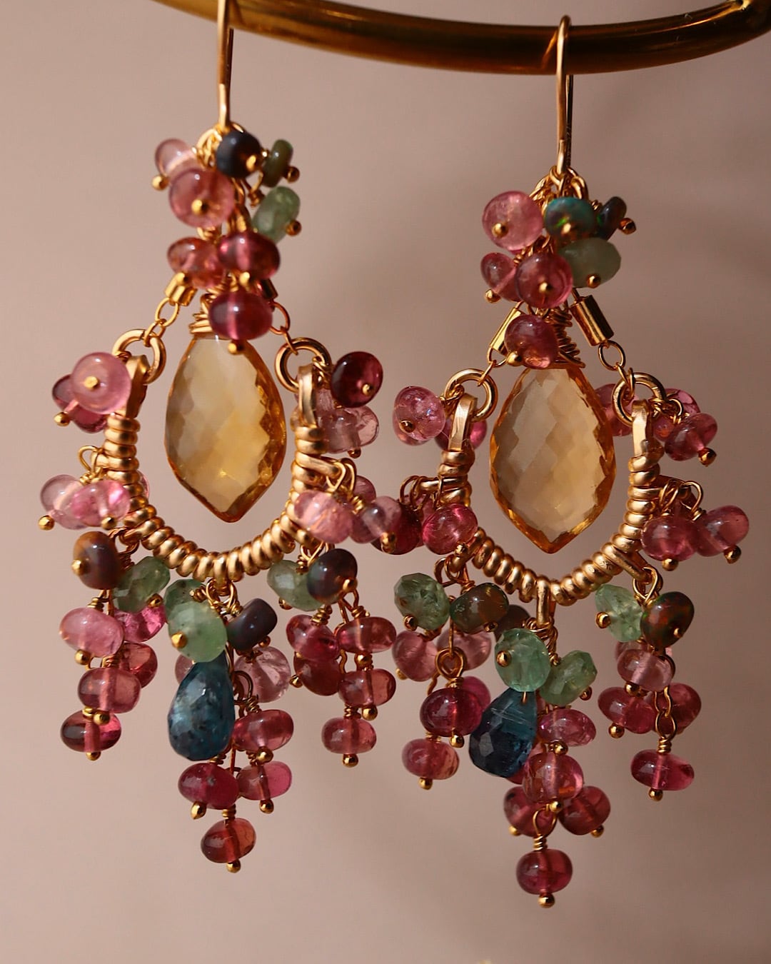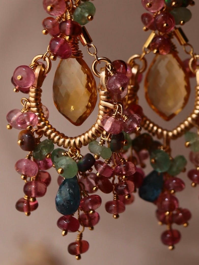 シトリン、ピンクトルマリン、ディープブルーカイヤナイト、グリーンカイヤナイト、ブラックオパール