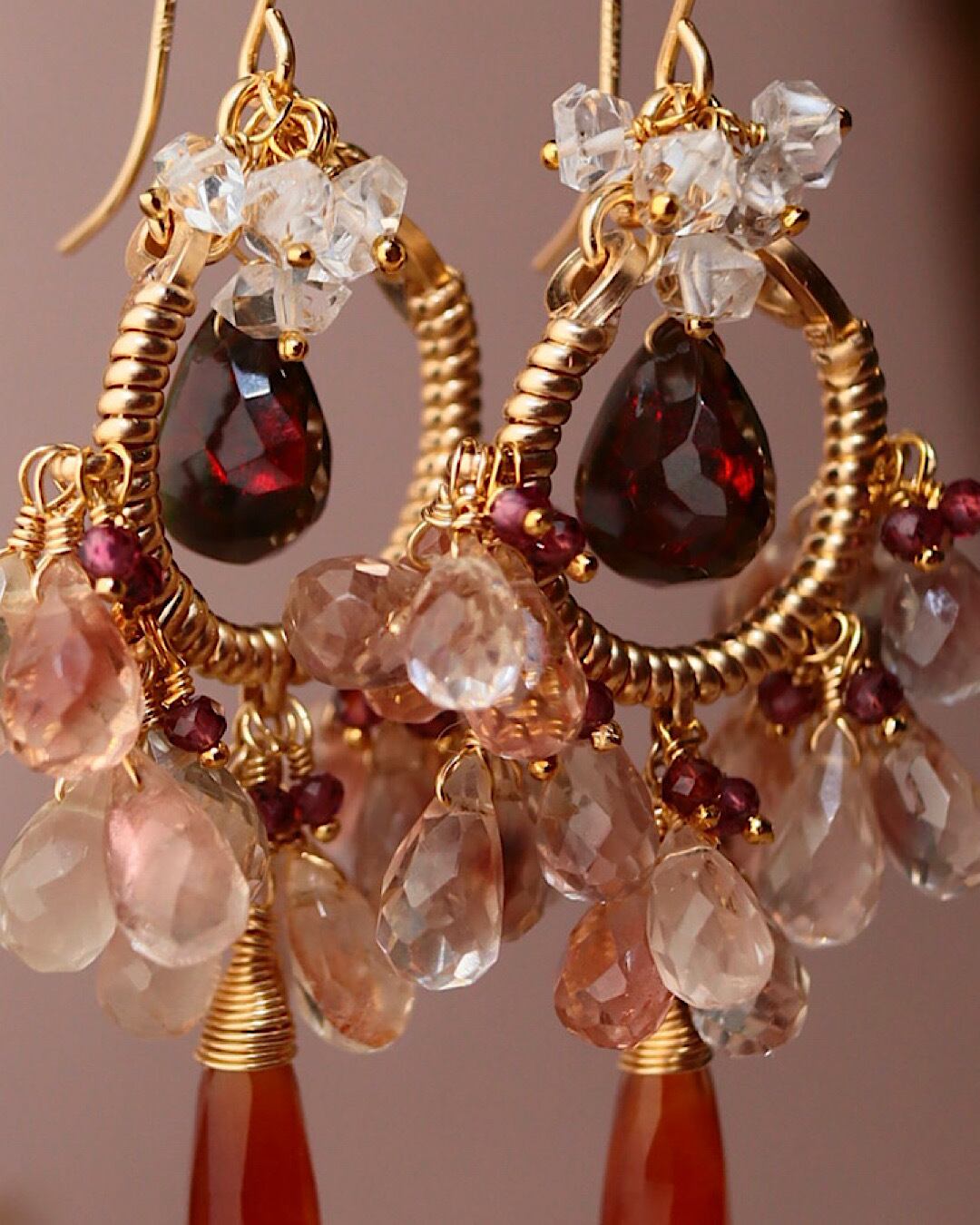 ブラックオパール、サードニクス、オレゴンサンストーン、ガーネット、ダブルポイント水晶