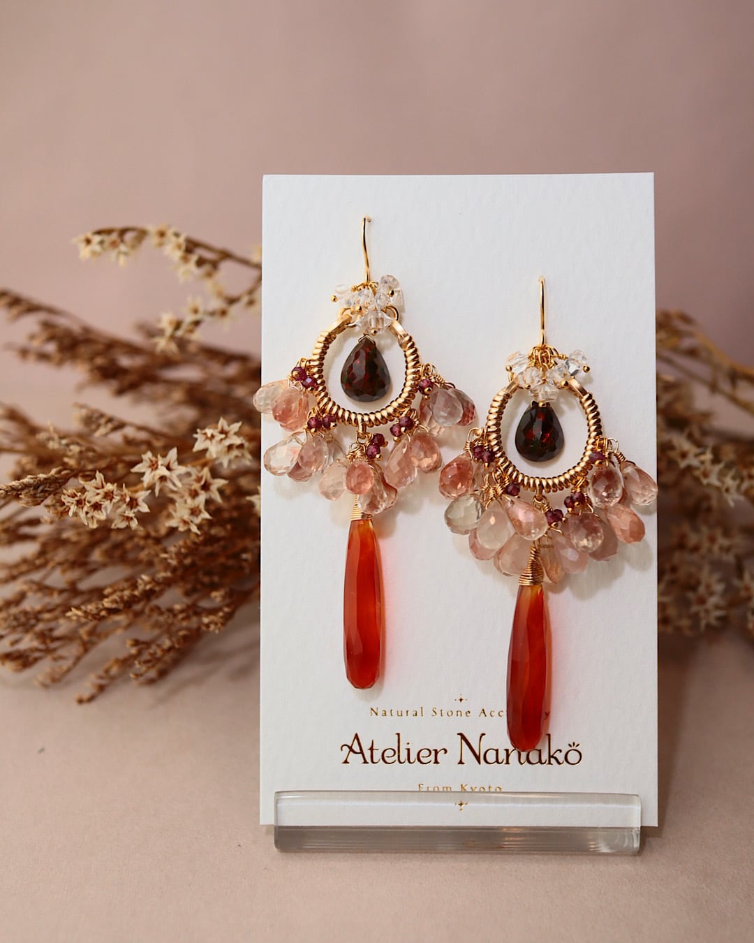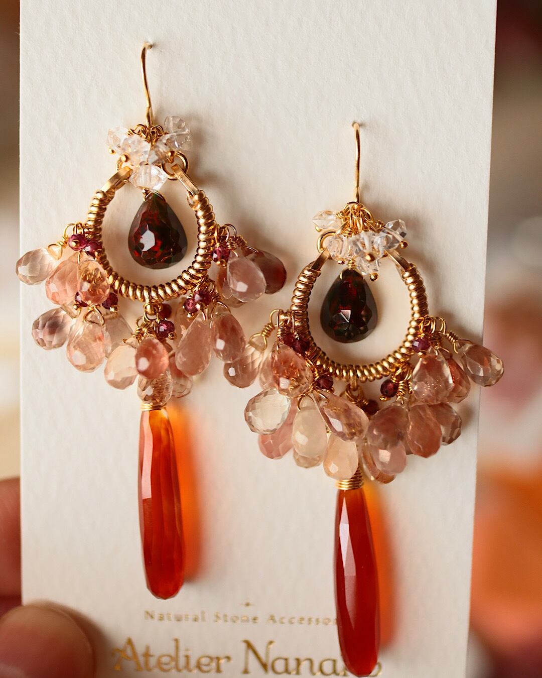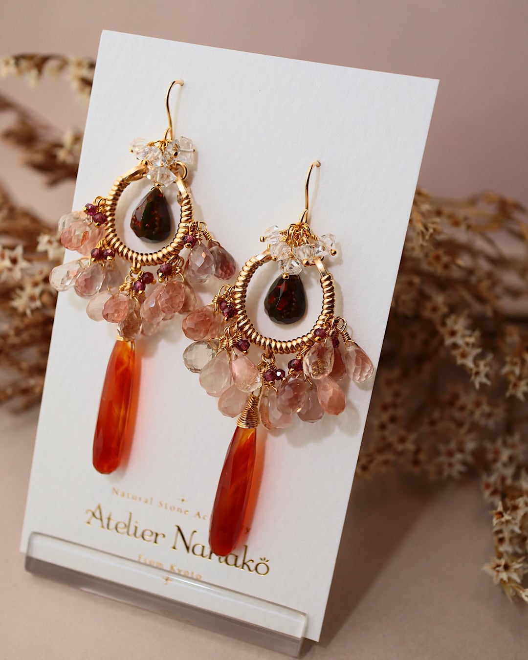 ③【日の出の刻に】ブラックオパールとサードニクスのシャンデリアピアス/イヤリング