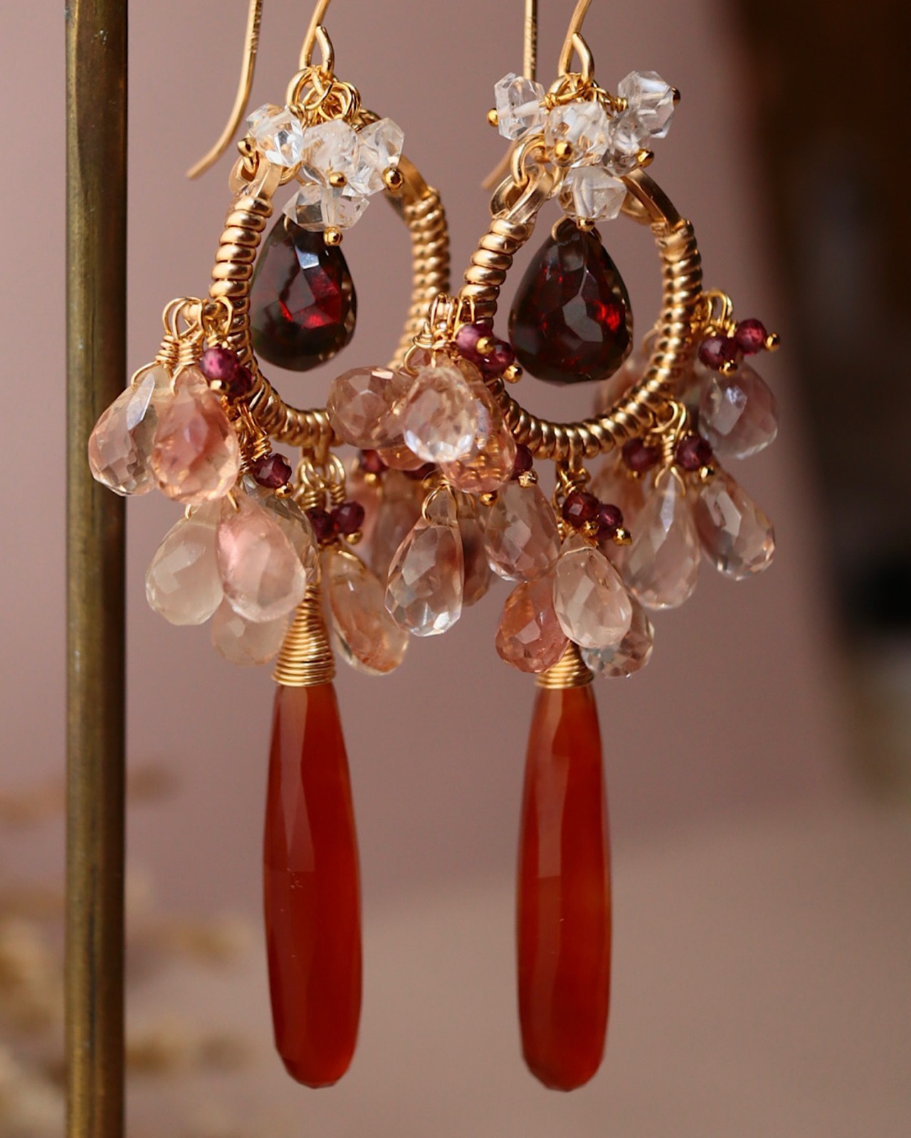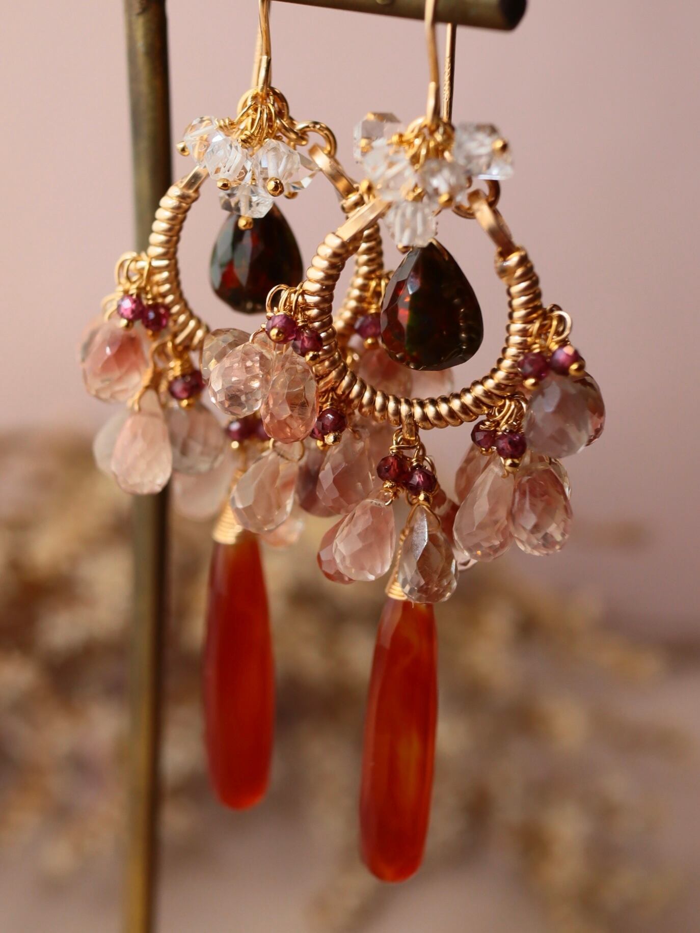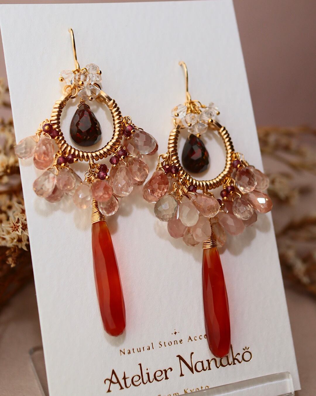③【日の出の刻に】ブラックオパールとサードニクスのシャンデリアピアス/イヤリング