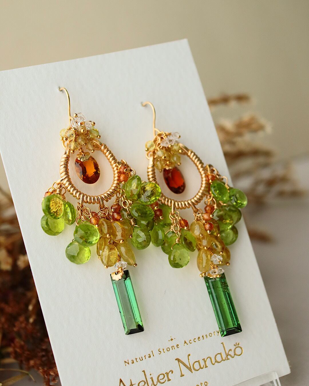 【1点もの】トルマリンとペリドットのシャンデリアピアス/イヤリング