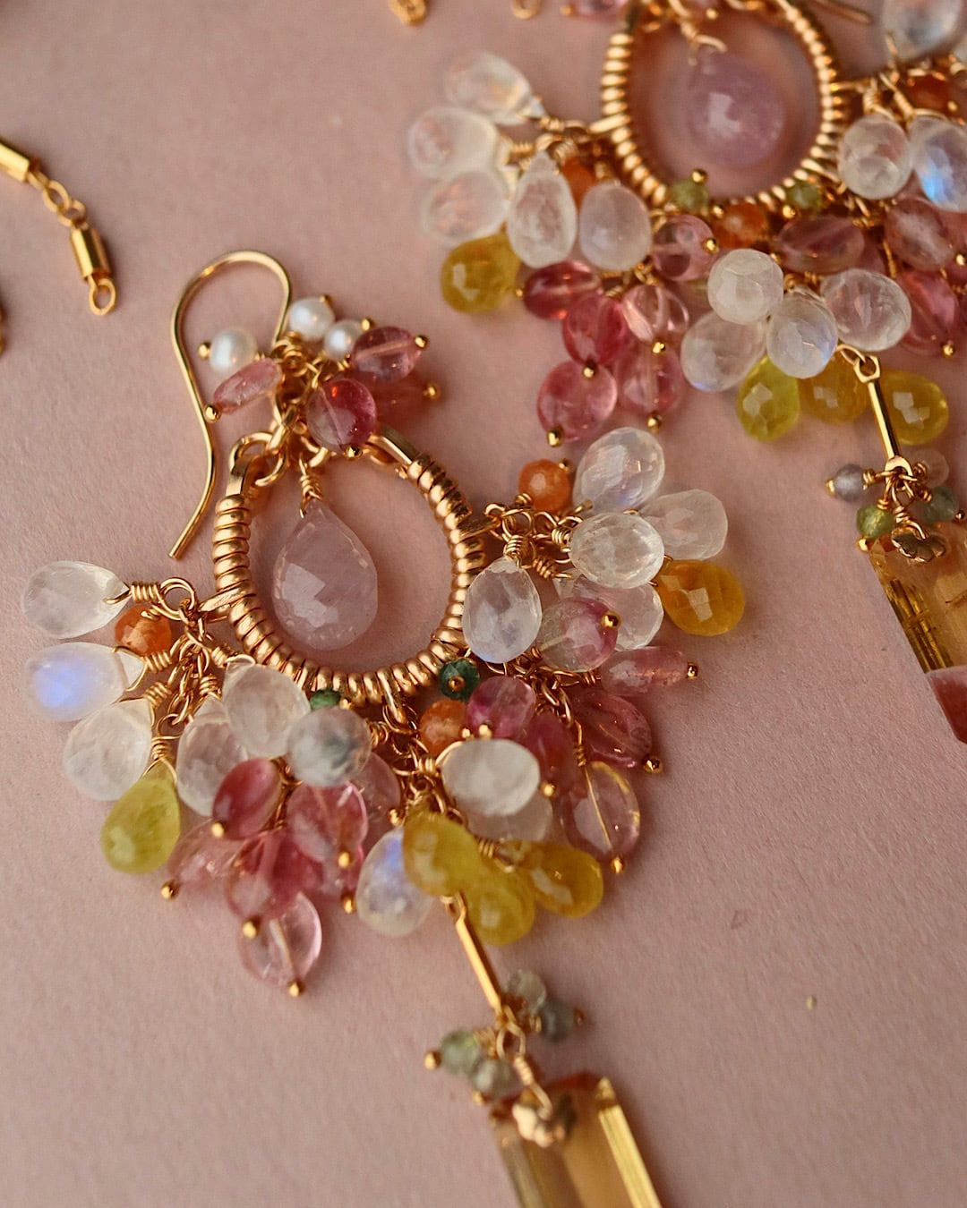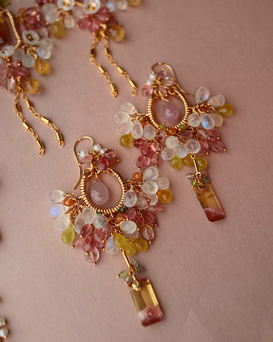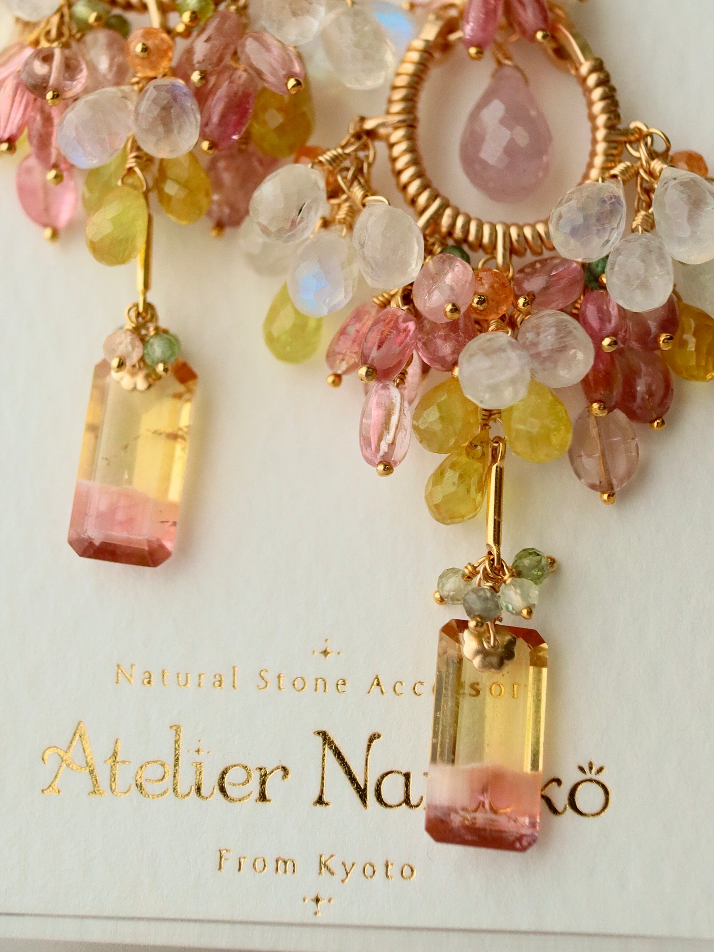 バイカラートルマリン(ピンク×イエロー)、サファイア(ピンク・イエロー)、ムーンストーン、オレンジガーネット