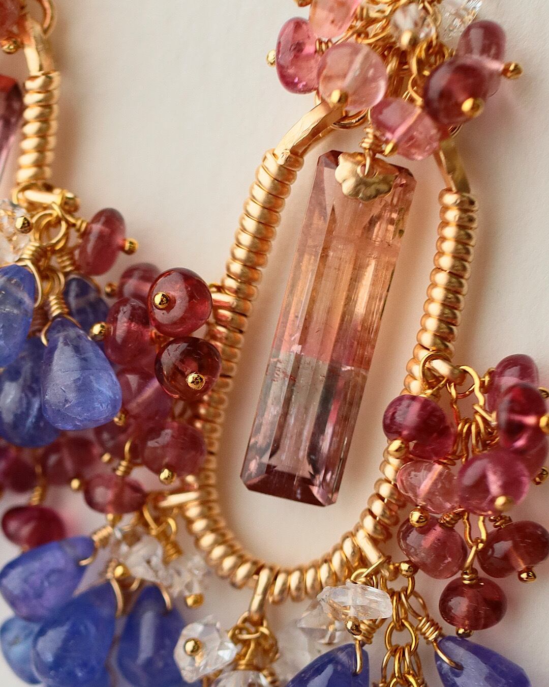 バイカラートルマリン(ピンク×パプル)、タンザナイト、ピンクトルマリン、ダブルポイント水晶