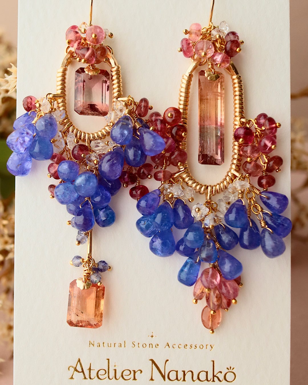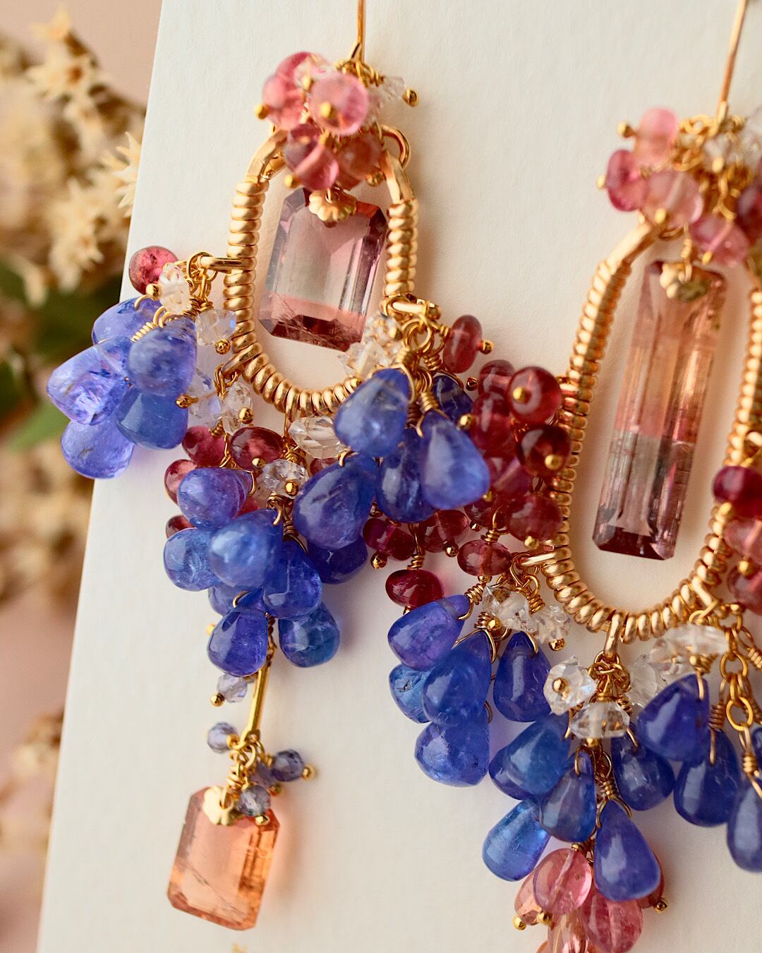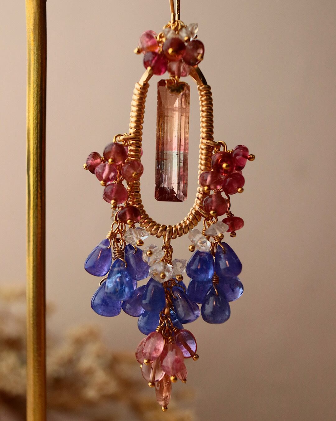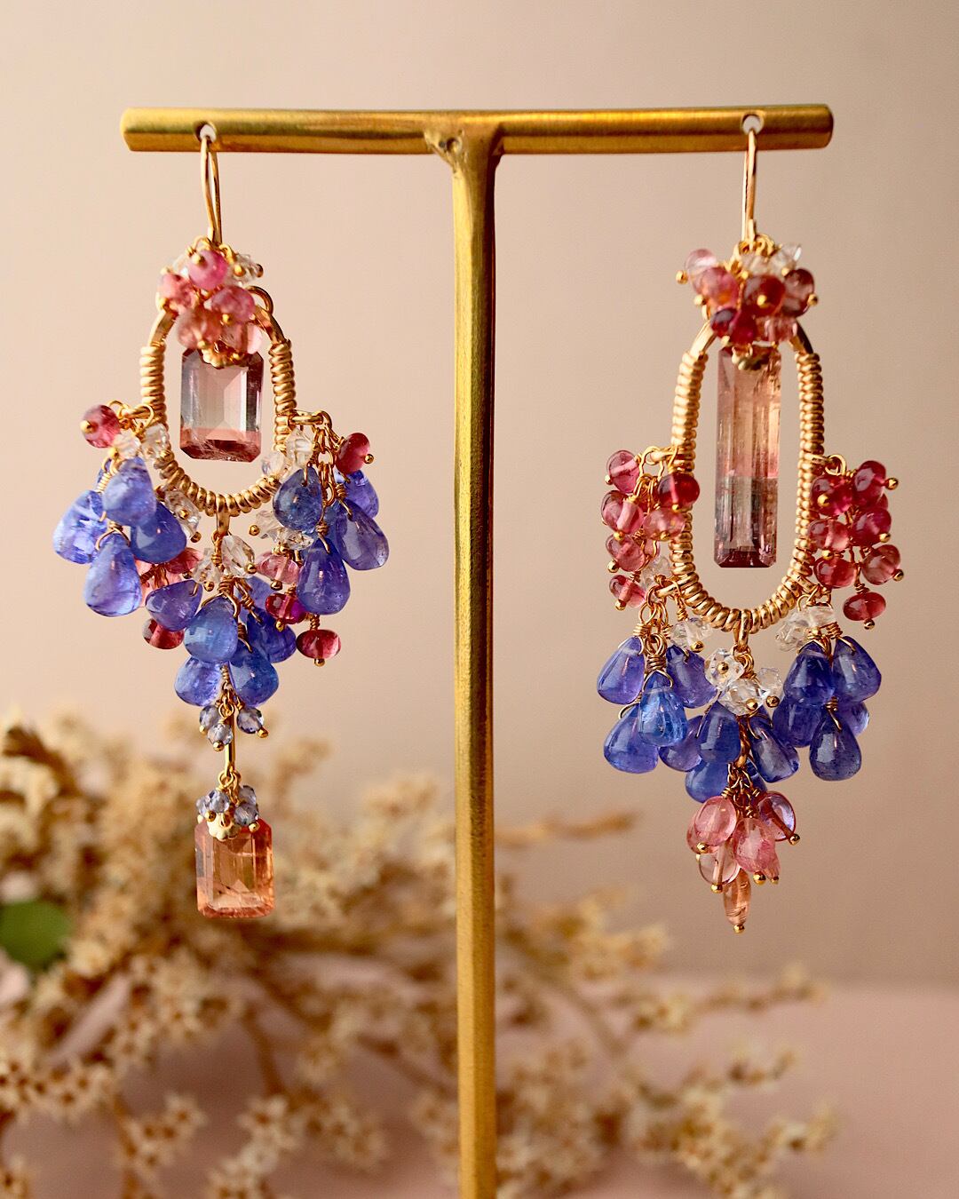 【1点もの】バイカラートルマリンとタンザナイトのシャンデリアピアス/イヤリング