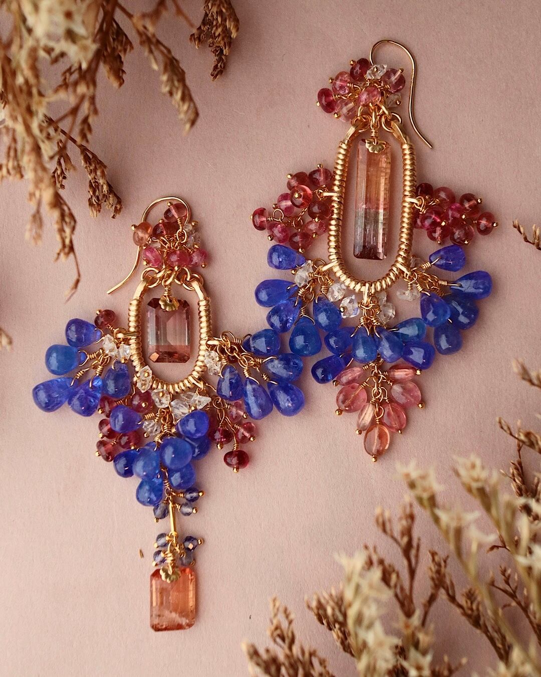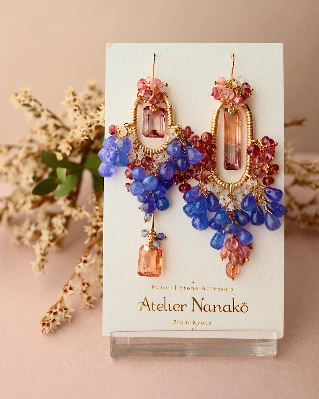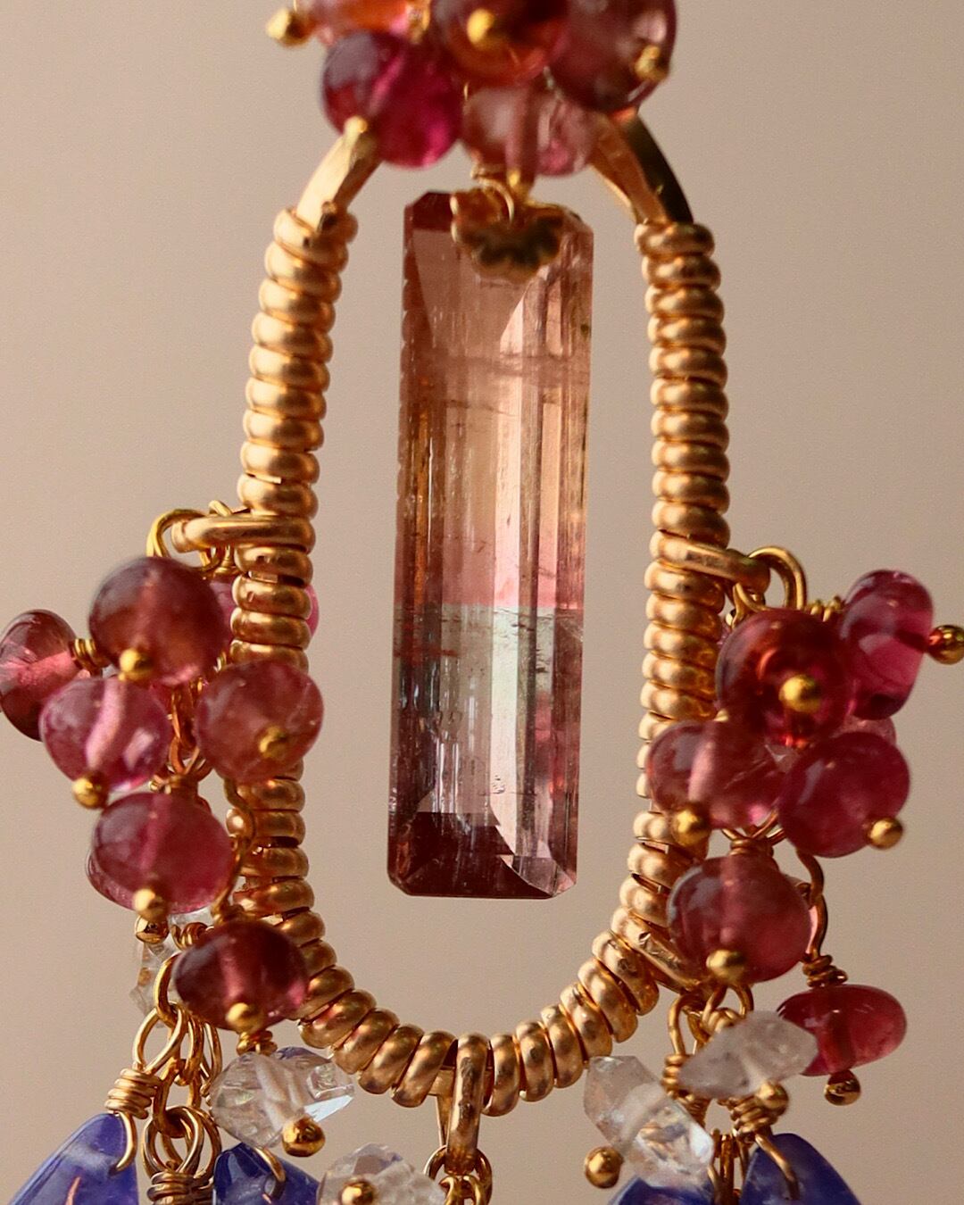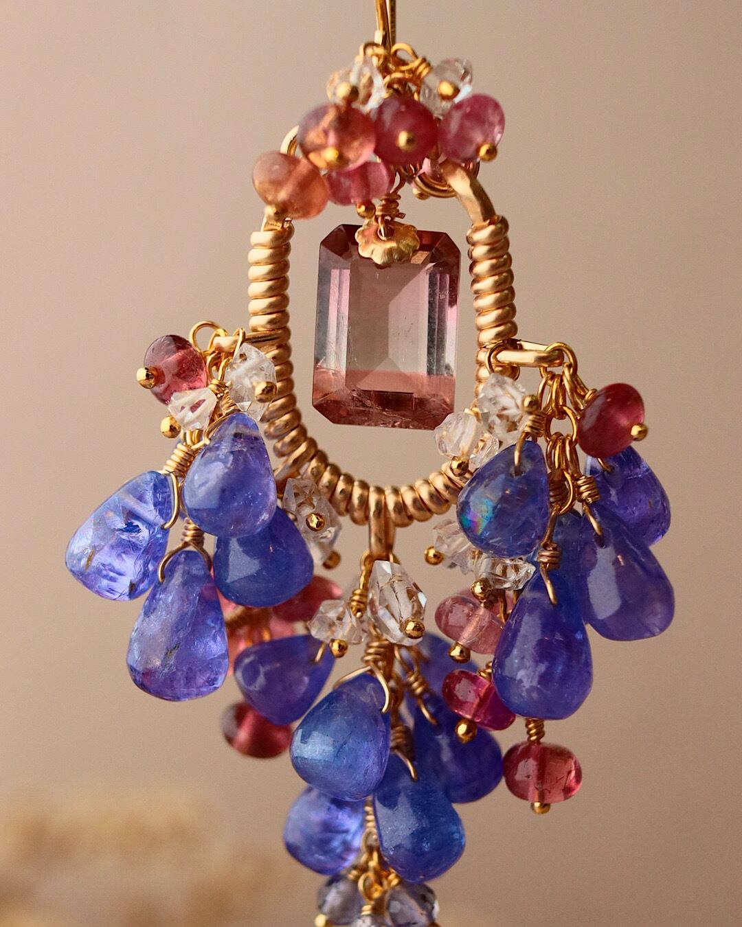 【1点もの】バイカラートルマリンとタンザナイトのシャンデリアピアス/イヤリング