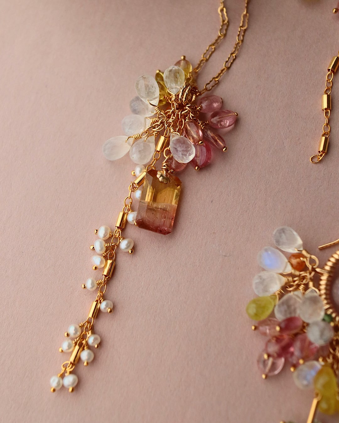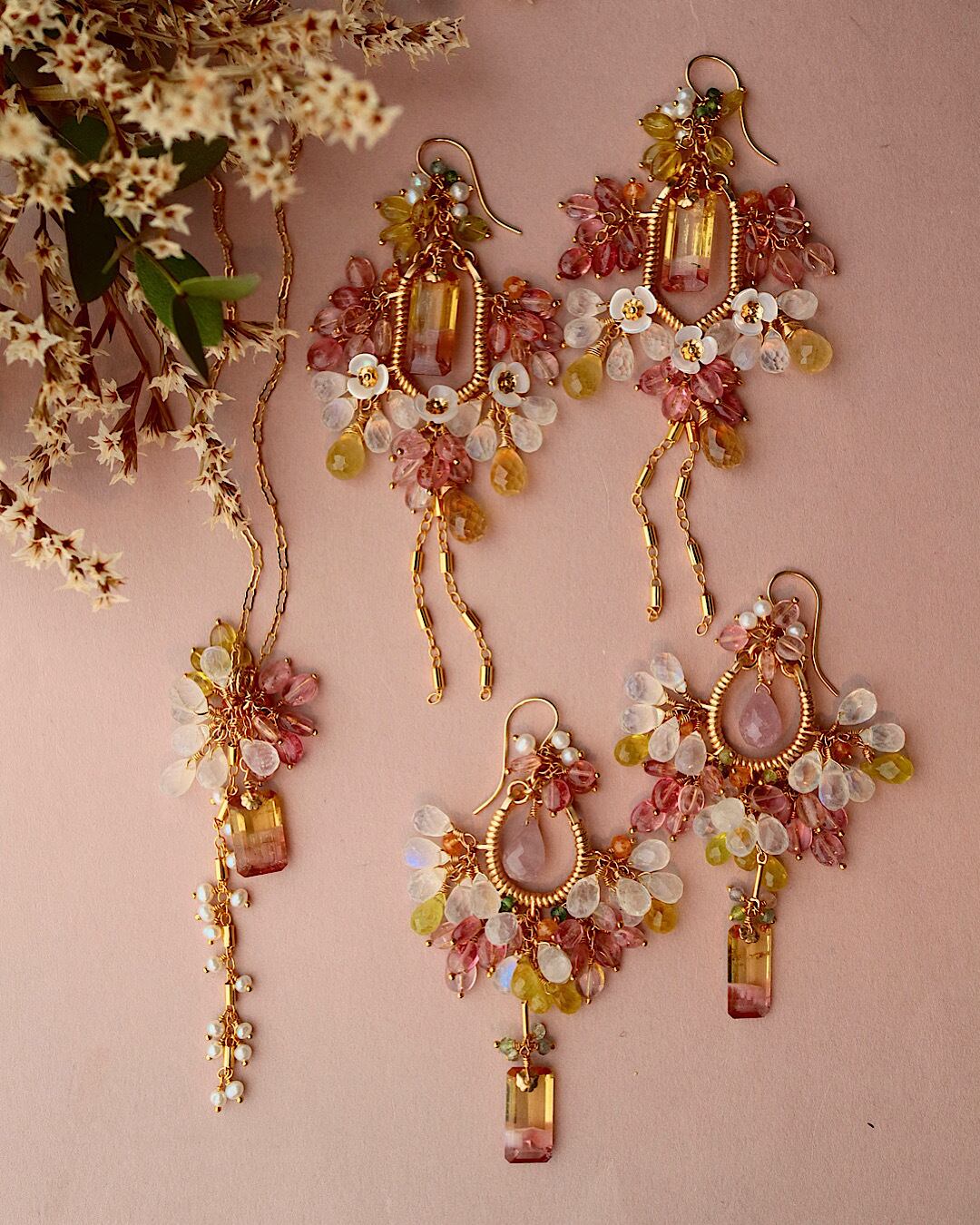 バイカラートルマリン、ピンクトルマリン、ムーンストーン、イエロートルマリン、オレンジガーネット